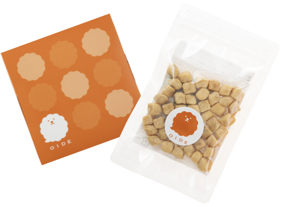 大切なワンちゃんがノドに詰まらせないように…食べやすいように…なぜかおやつを手でちぎる機会は多いです。そこでOIDEは粒のサイズ感にもこだわりました。